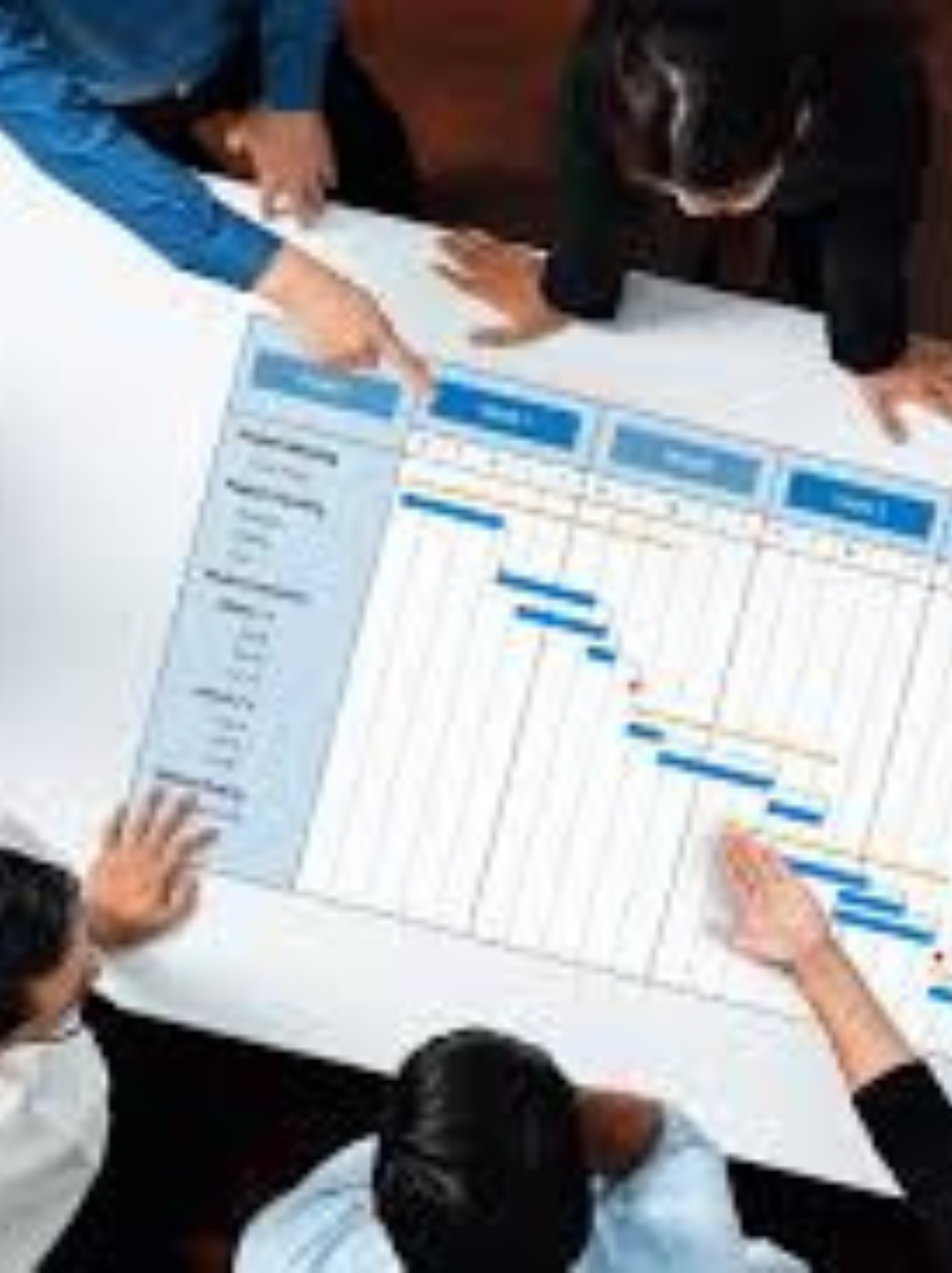 A photograph depicting a group of employees collaborating in a training session at a modern office, emphasizing teamwork and in-person interaction, reflecting Bessa Consultores' closed group training format for companies.